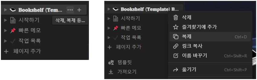 ์ผ์ชฝ '๊ฐ์ธ ํ์ด์ง' ๋ชฉ๋ก์์ ๋ณต์ ํ ํ ํ๋ฆฟ์ ์ฐพ์ ๋ง์ฐ์ค ์ปค์๋ฅผ ๊ฐ๋ค ๋๋ฉด ' โ โ โ (๋๋ณด๊ธฐ) ' ํ์๊ฐ ์๋๋ฐ์.