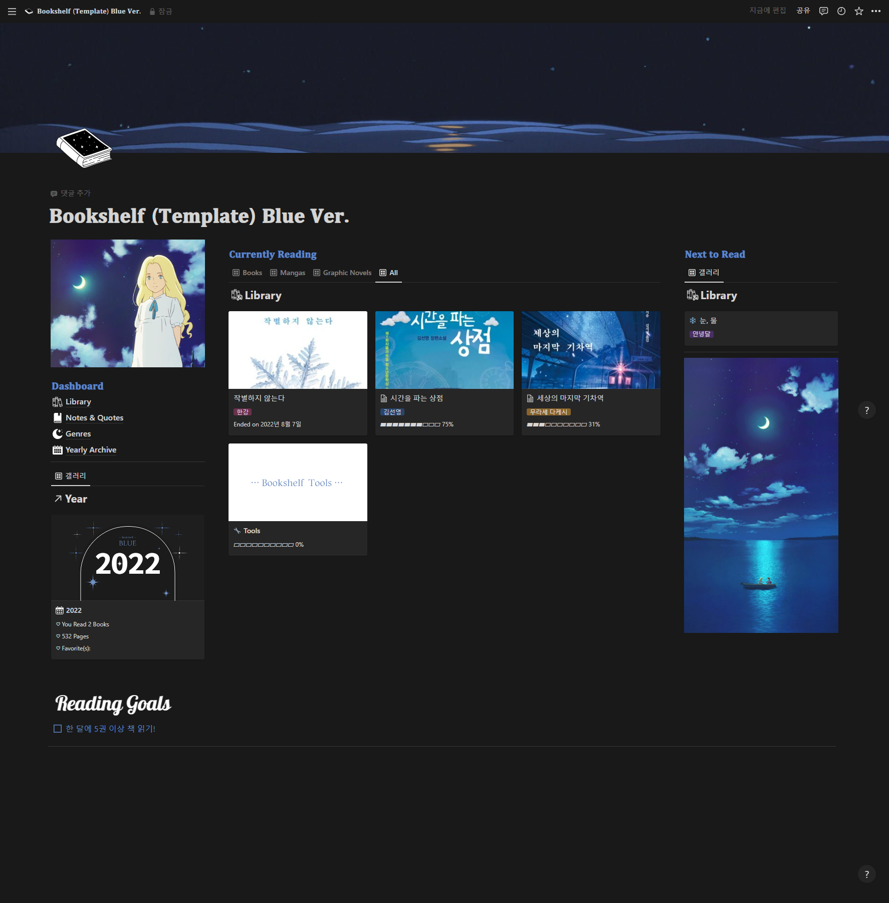 ํฐ๊ฐ ์ ๋์ง ์์ ์ ์๋๋ฐ ์ ๋ณด์๋ฉด ์ ๋ชฉ๋ค(Bookshelf(Template) Blue Ver., Dashboard, Currently Reading, Next to Read)์ ๊ธ์จ์ฒด๊ฐ ์ด์ง ๋ค๋ฆ ๋๋ค.