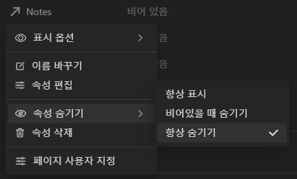 ๐'Notes' ํด๋ฆญ > '์์ฑ ์จ๊ธฐ๊ธฐ' > 'ํญ์ ์จ๊ธฐ๊ธฐ'
